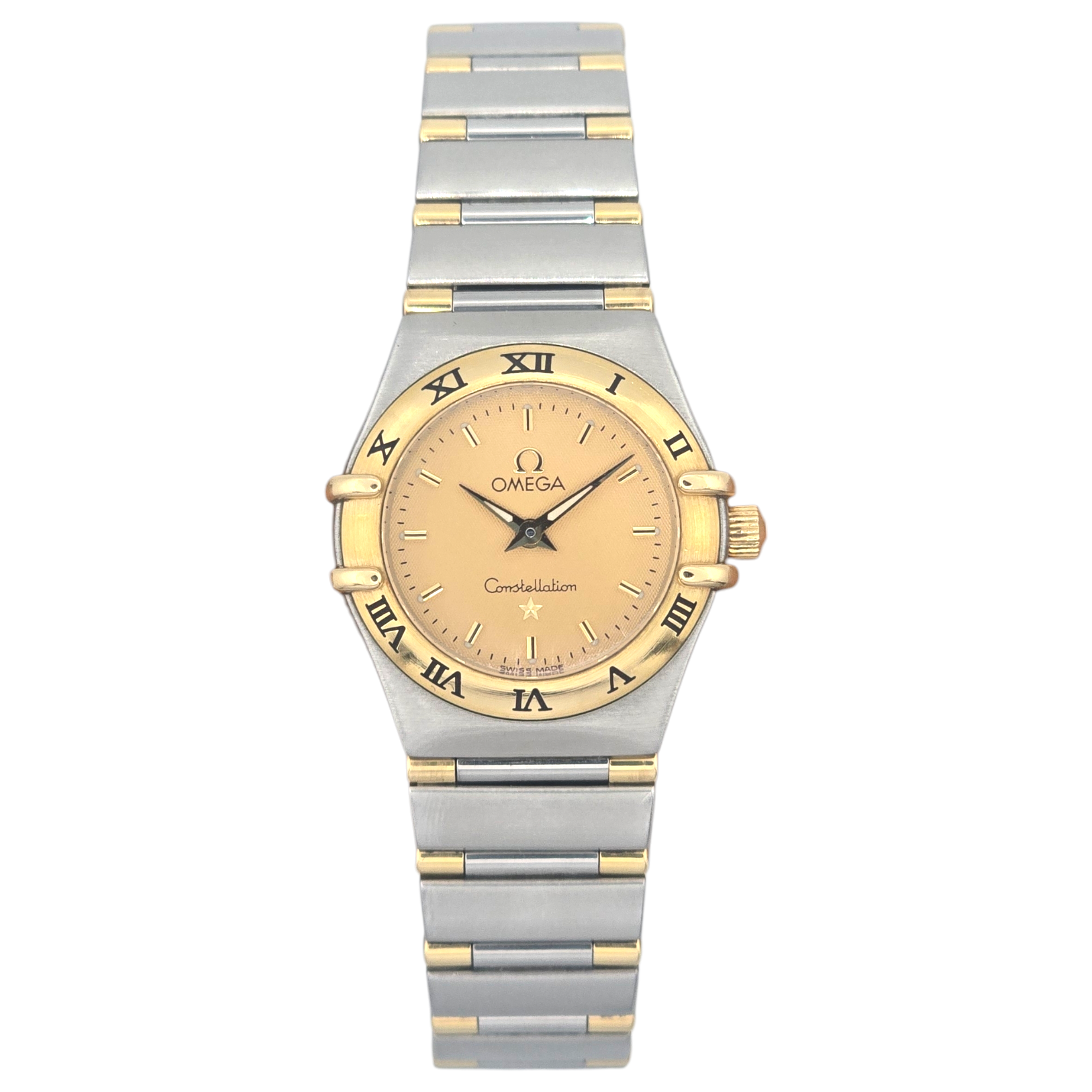 This Ladies Omega Constellation 1362.10.00 is a beautifully proportioned 22mm model crafted in gold and stainless steel, featuring the iconic Constellation bezel, integrated bracelet, and classic champagne dial. Produced in 1999 and offered here as a full set, it combines Swiss precision quartz reliability with unmistakable Omega styling.