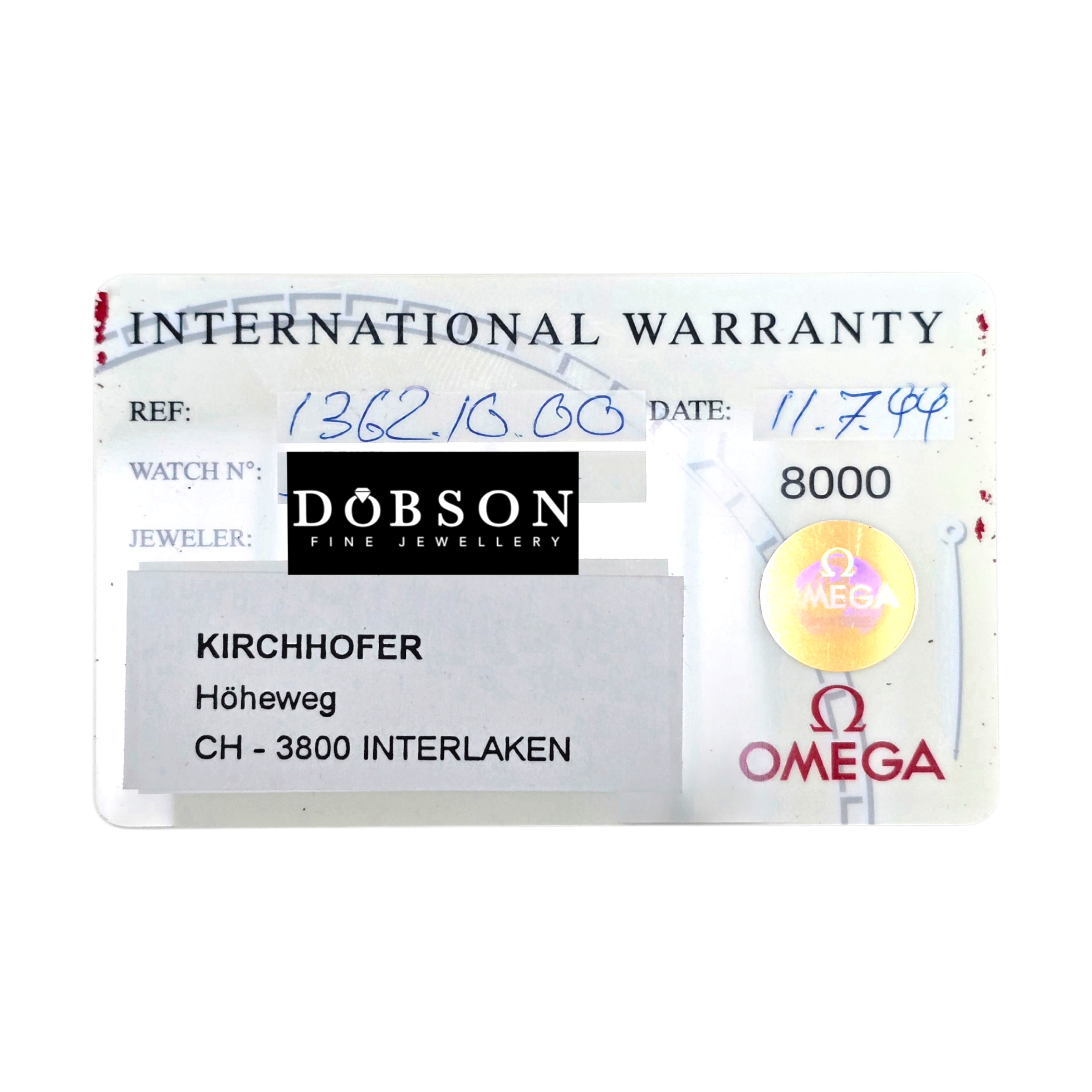 • Original Omega branded box, purchase receipt from Switzerland, booklets and international warranty card