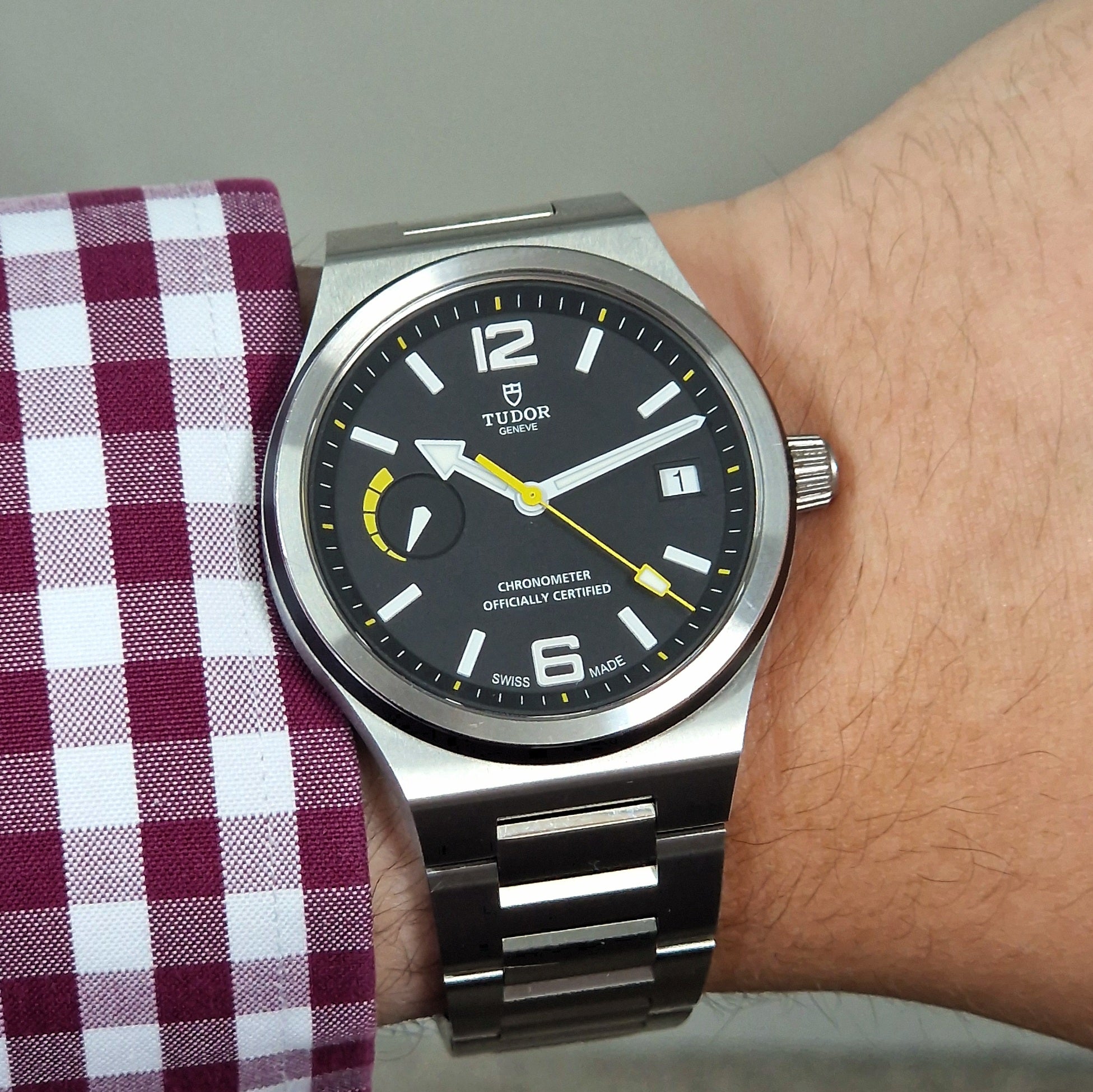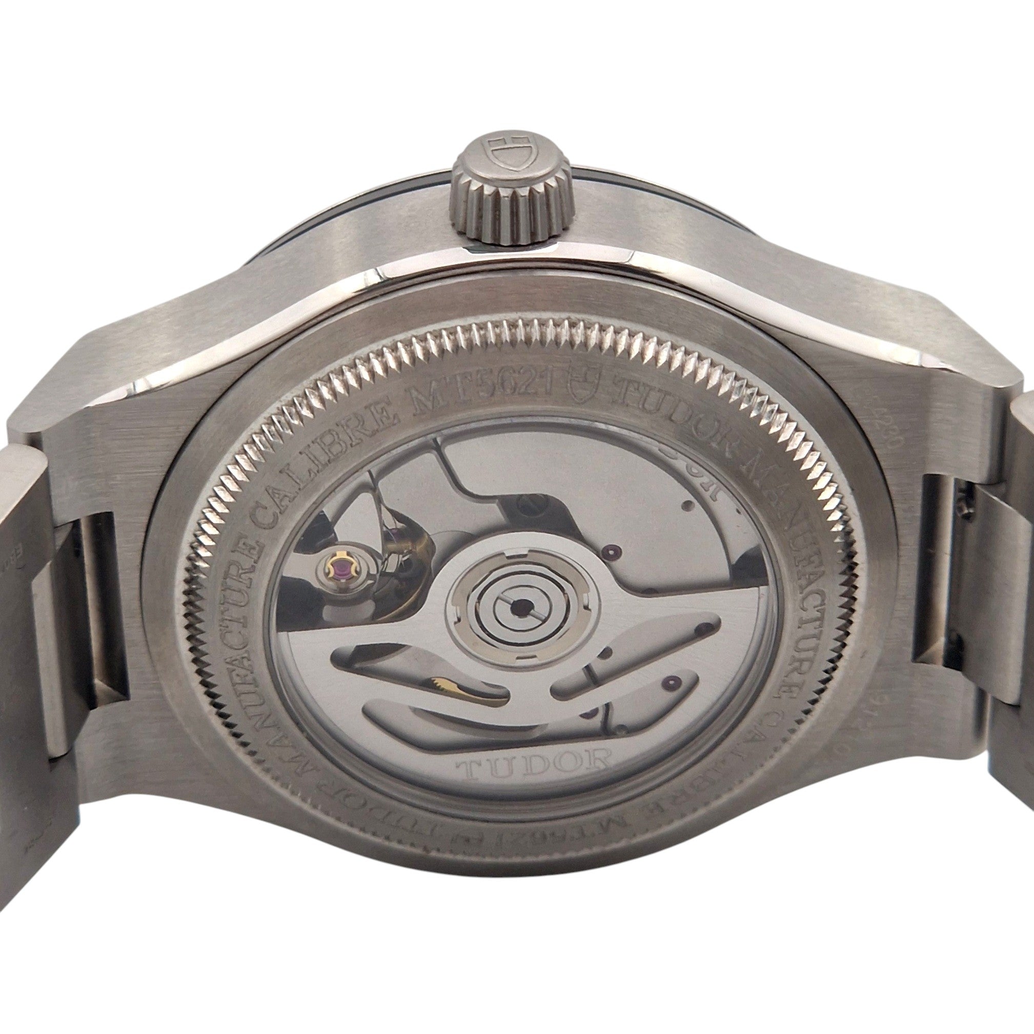 Released to great fanfare in 2015, the Tudor North Flag debuted Tudor's first in house movement and pays homage to watches worn by expeditionaries in North Greenland in the 1950's. The example offered for sale here was originally supplied by C H Moody & Son LTD in 2016 and features a black ceramic dial, power reserve gauge, exhibition caseback with a brushed stainless steel case and bracelet.