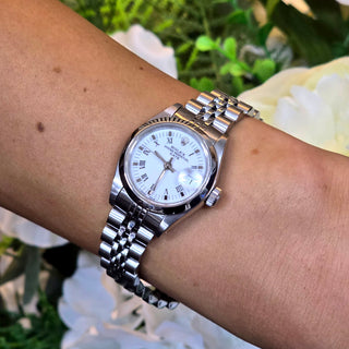 Ladies Rolex Oyster Perpetual 69160 26mm Roman White Dial Jubilee Bracelet 1990
