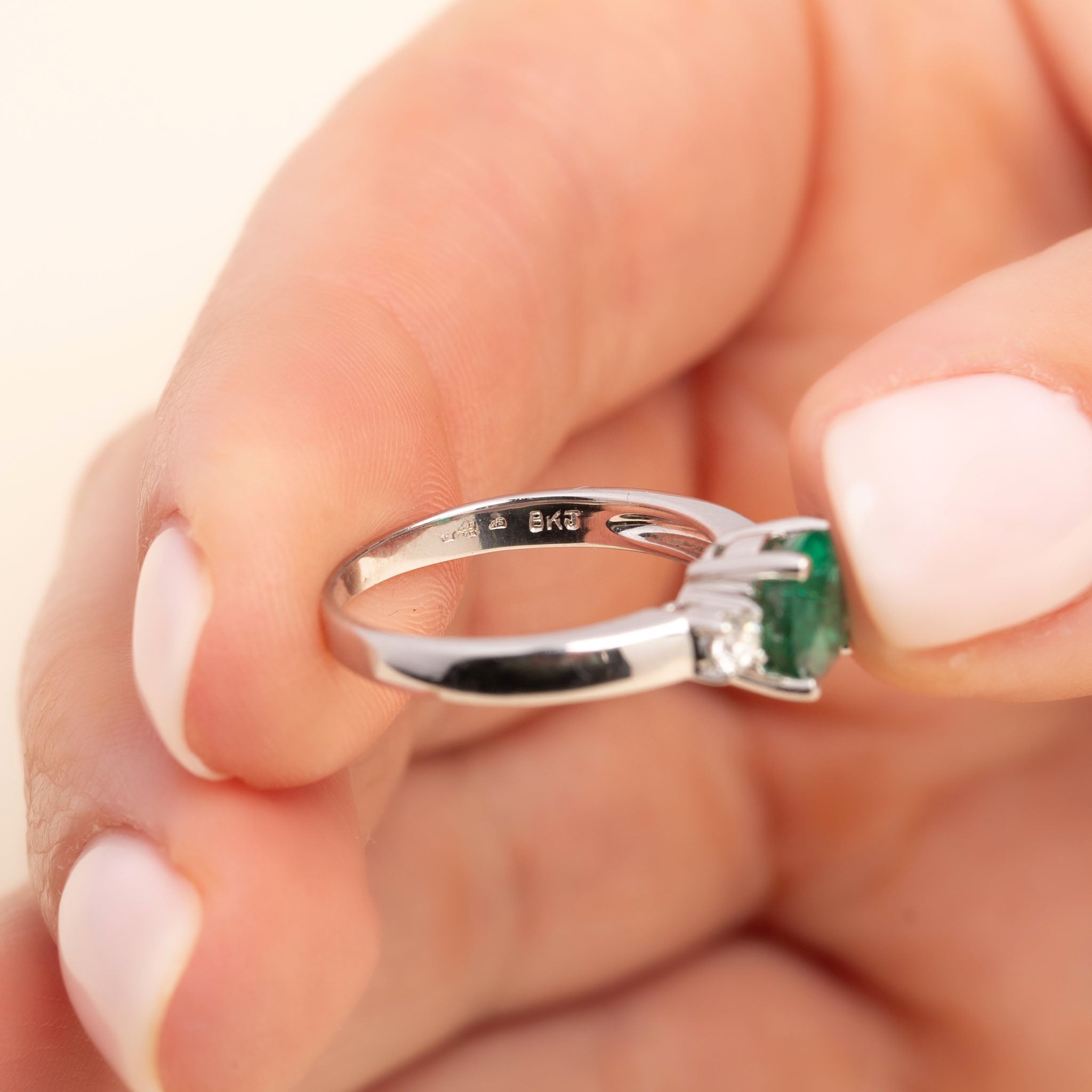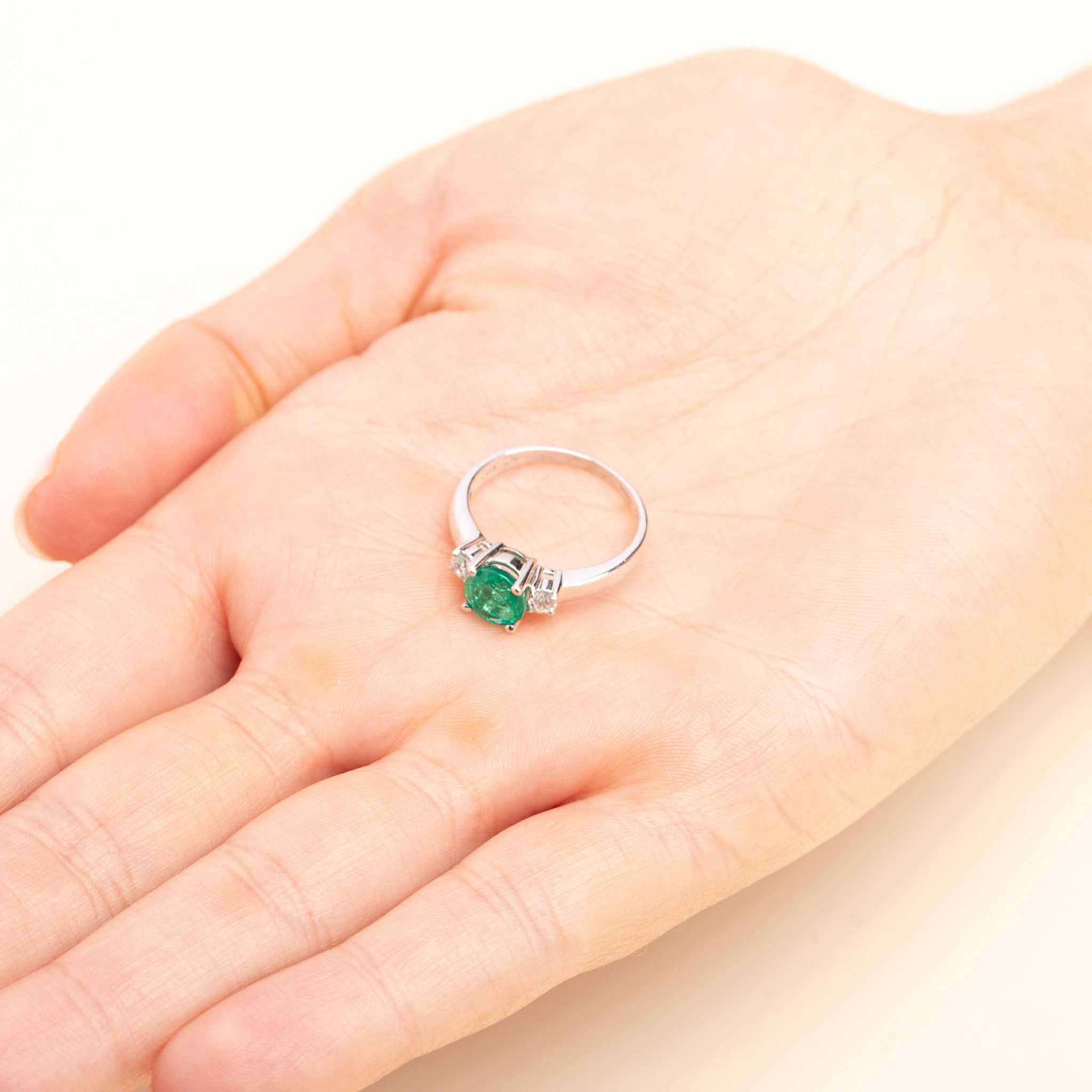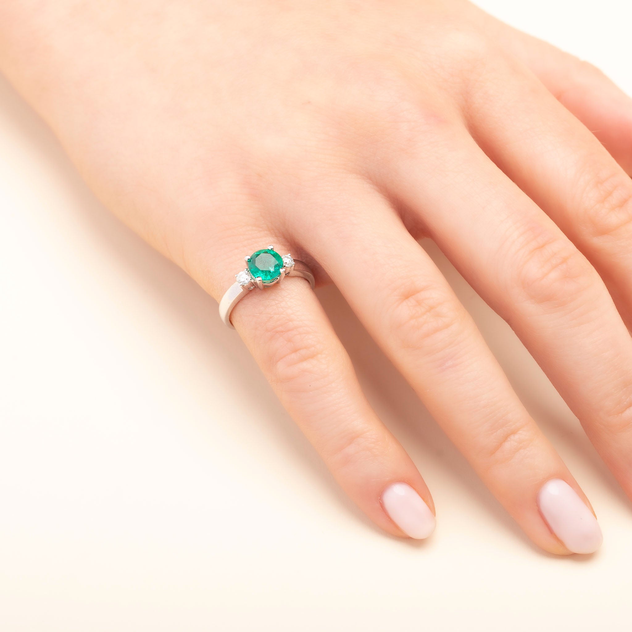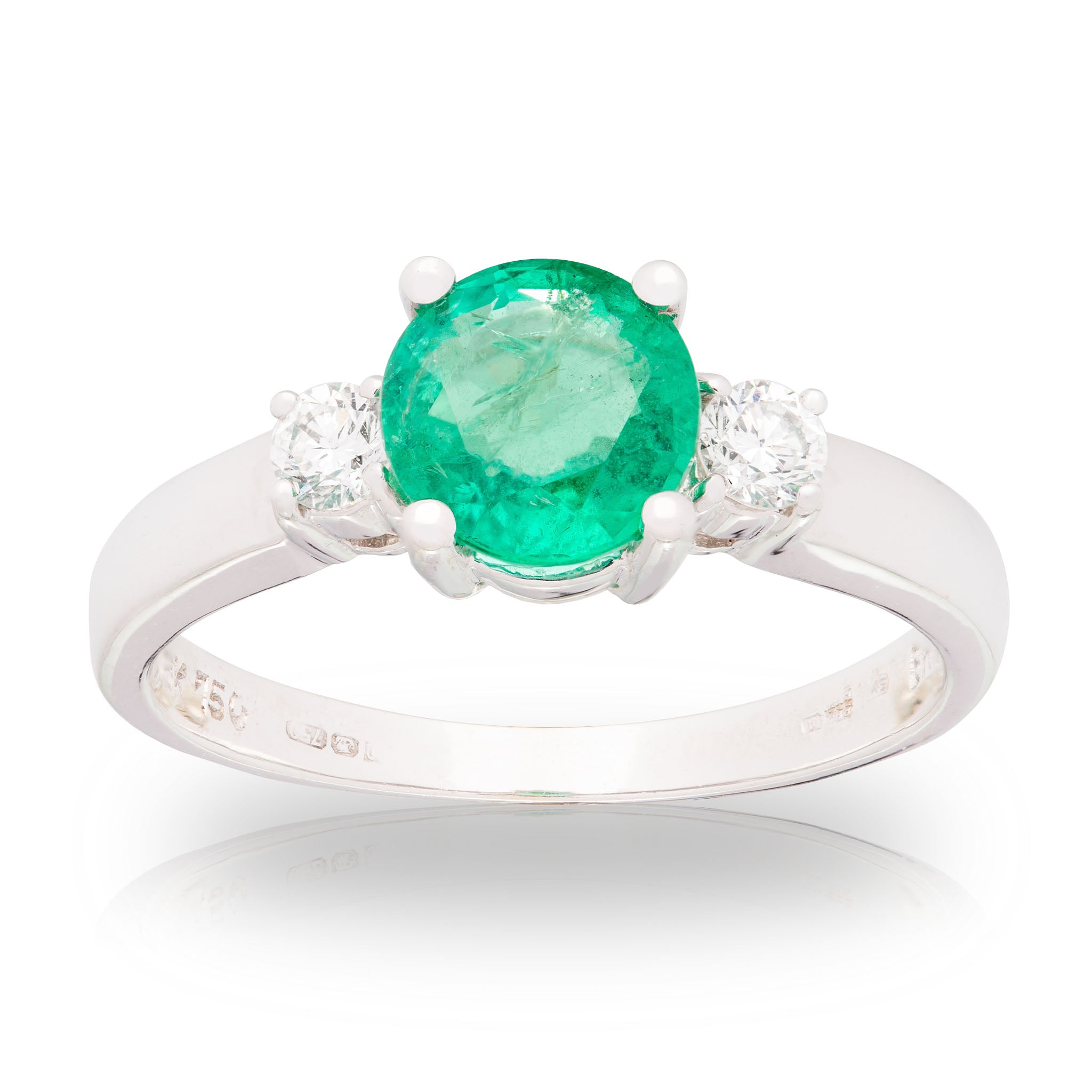 18ct White Gold Round Cut 0.9ct Emerald & 0.15ct Diamond Trilogy Ring