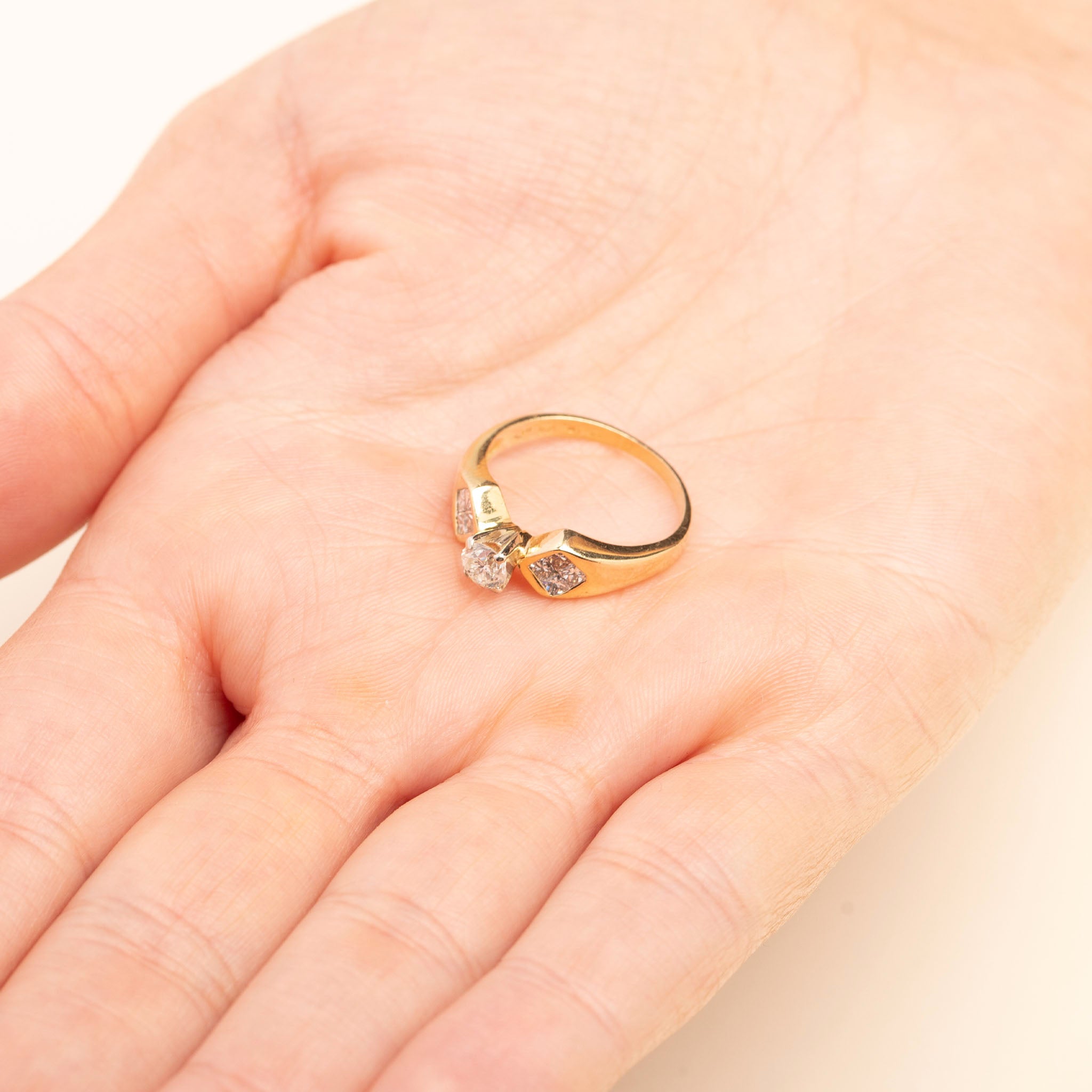 18ct Yellow Gold 0.6ct Round & Princess Cut Diamond Trilogy Ring