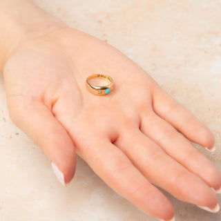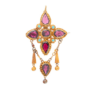 Victorian 15ct Yellow Gold Almandine Garnet & Cabochon Turquoise Etruscan Revival Pendant c1800s