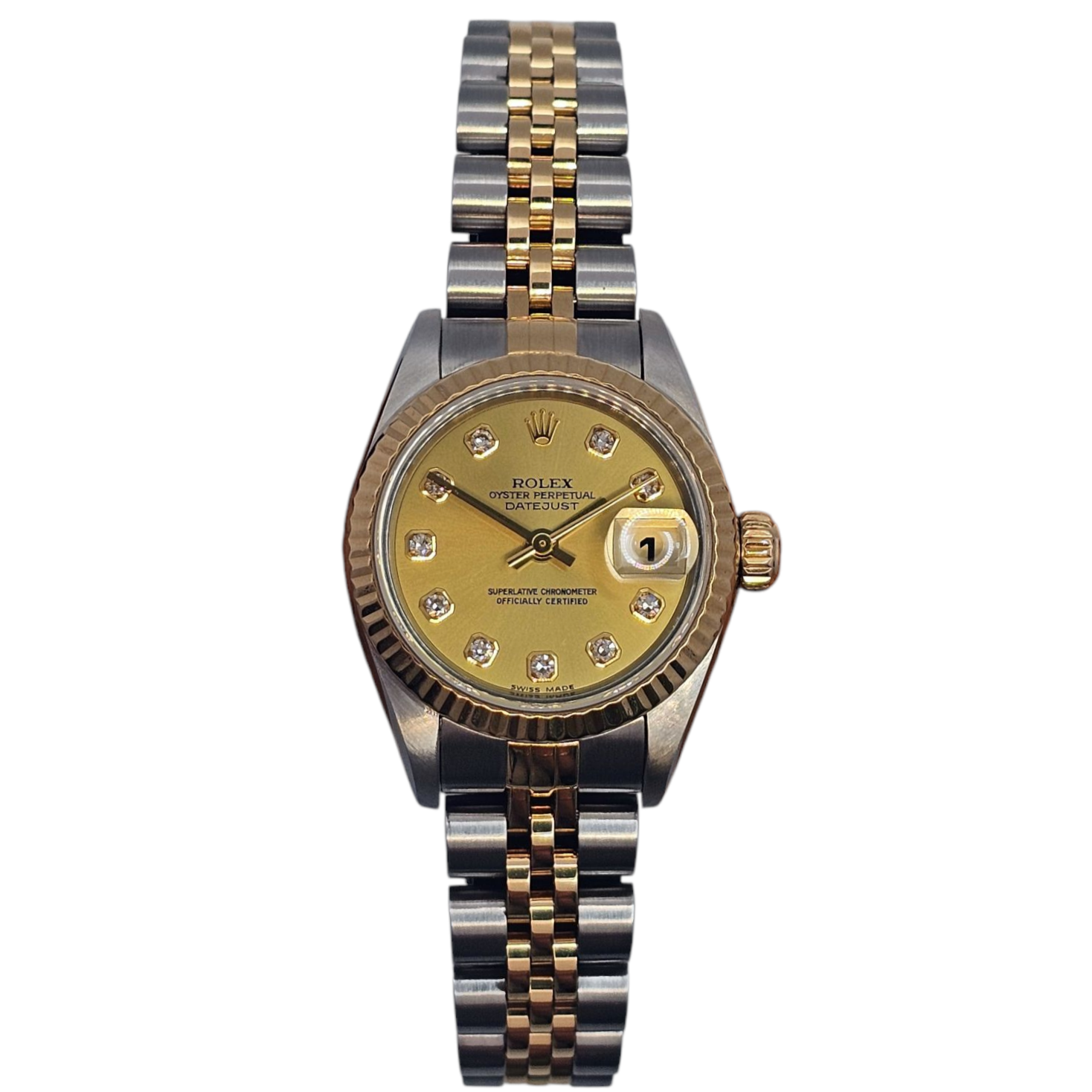 Expertly crafted from stainless steel and 18ct yellow gold, this ladies Datejust seamlessly blends luxury with everyday durability, making it a timeless piece for any occasion. It comes complete with all original accessories and full service history.