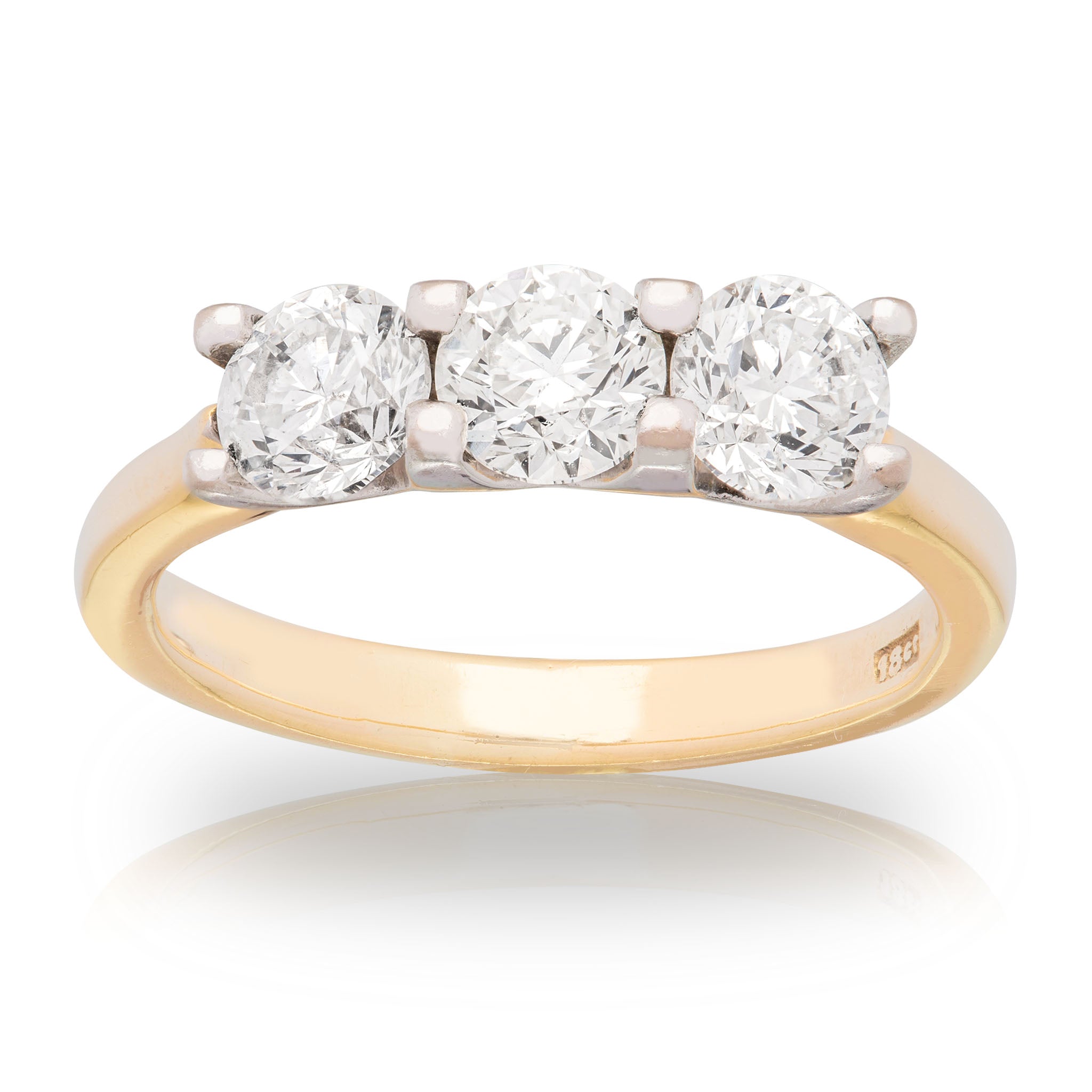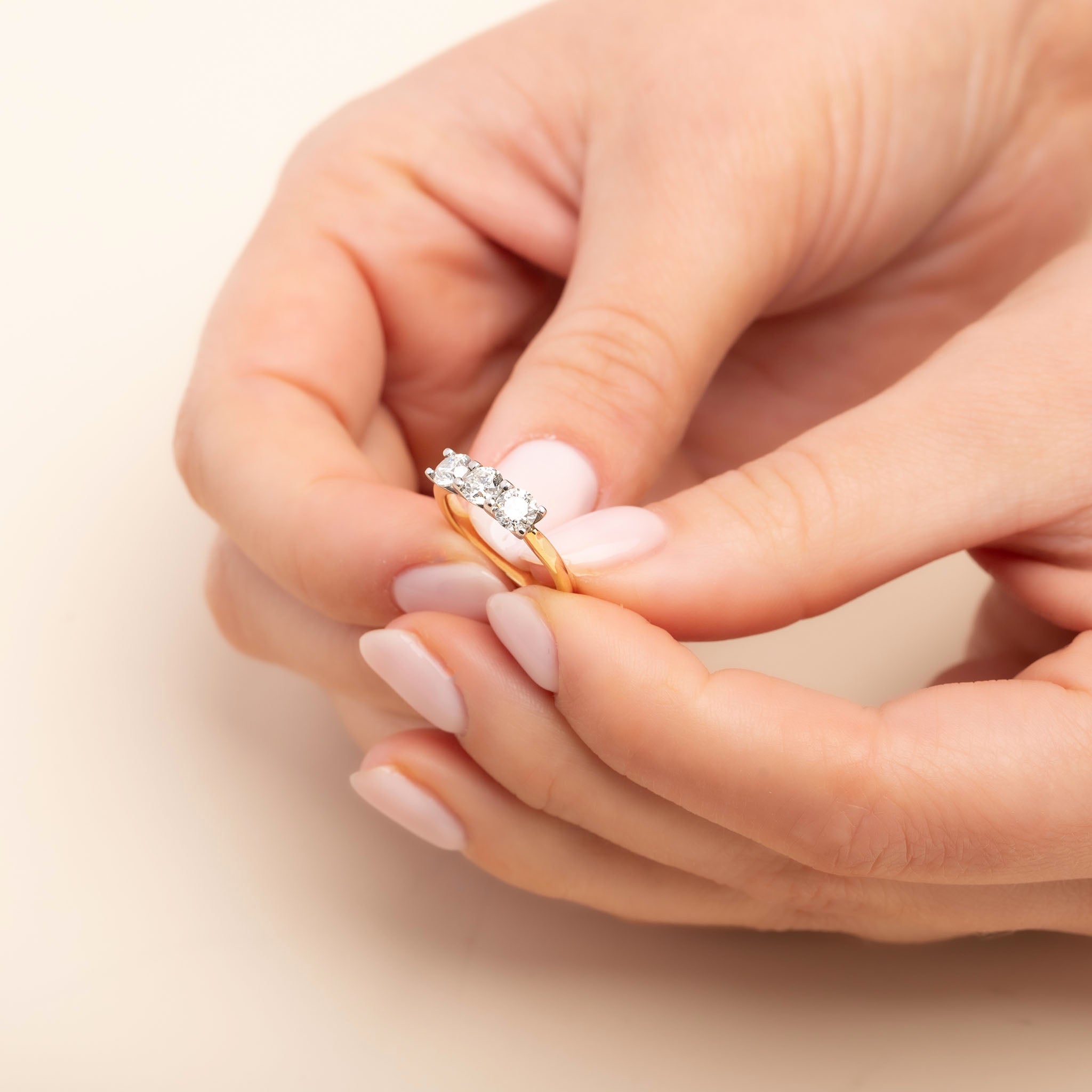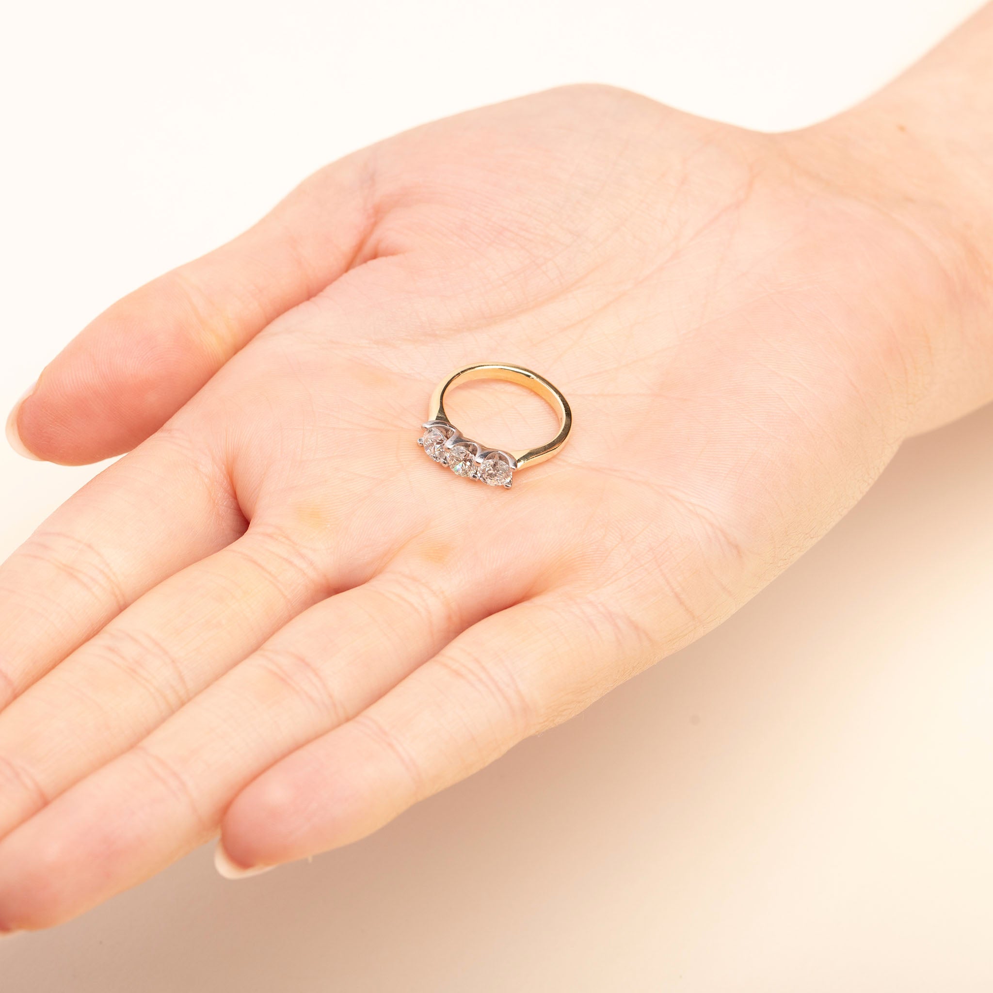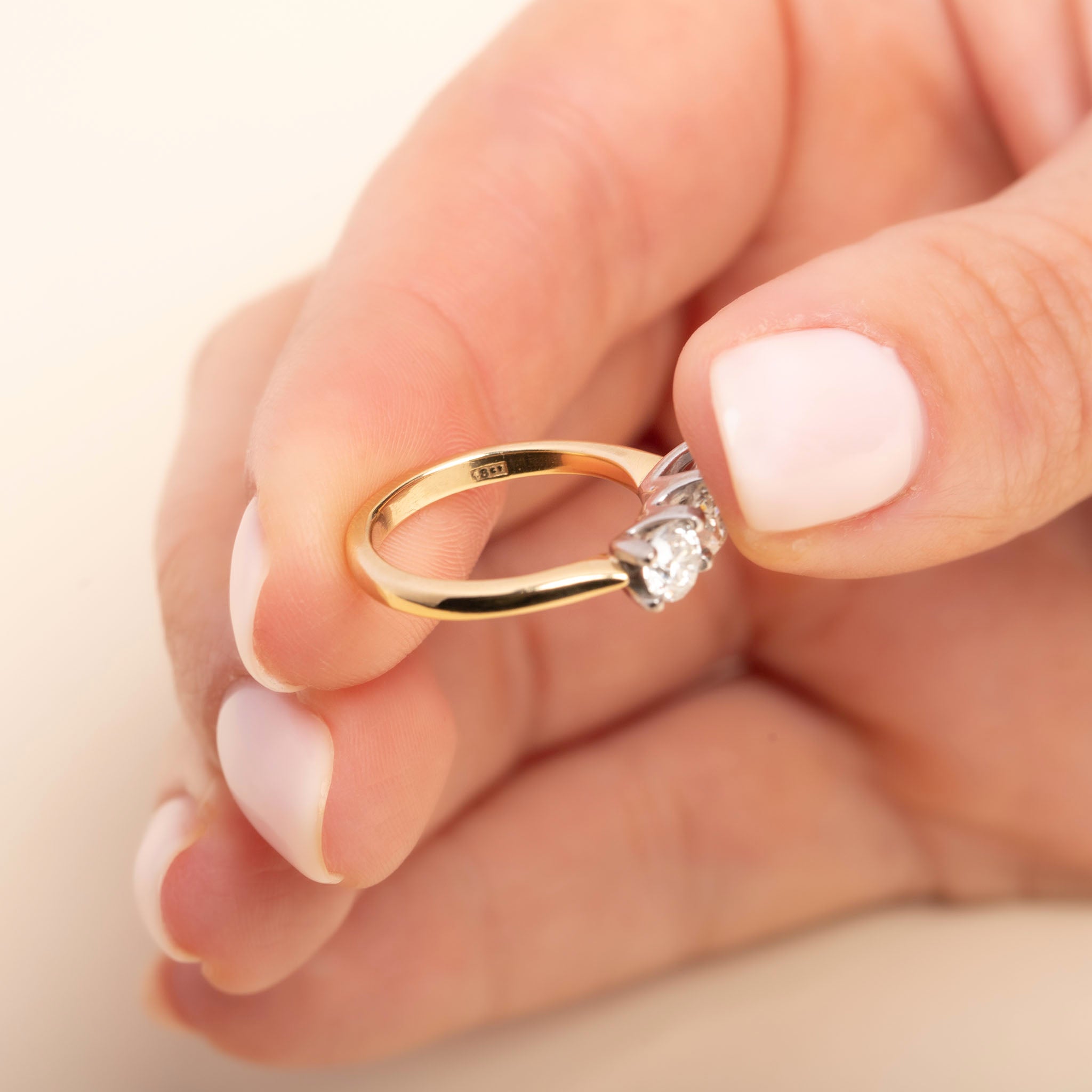 • Set with three very well matched round brilliant cut natural diamonds with a lovely sparkle