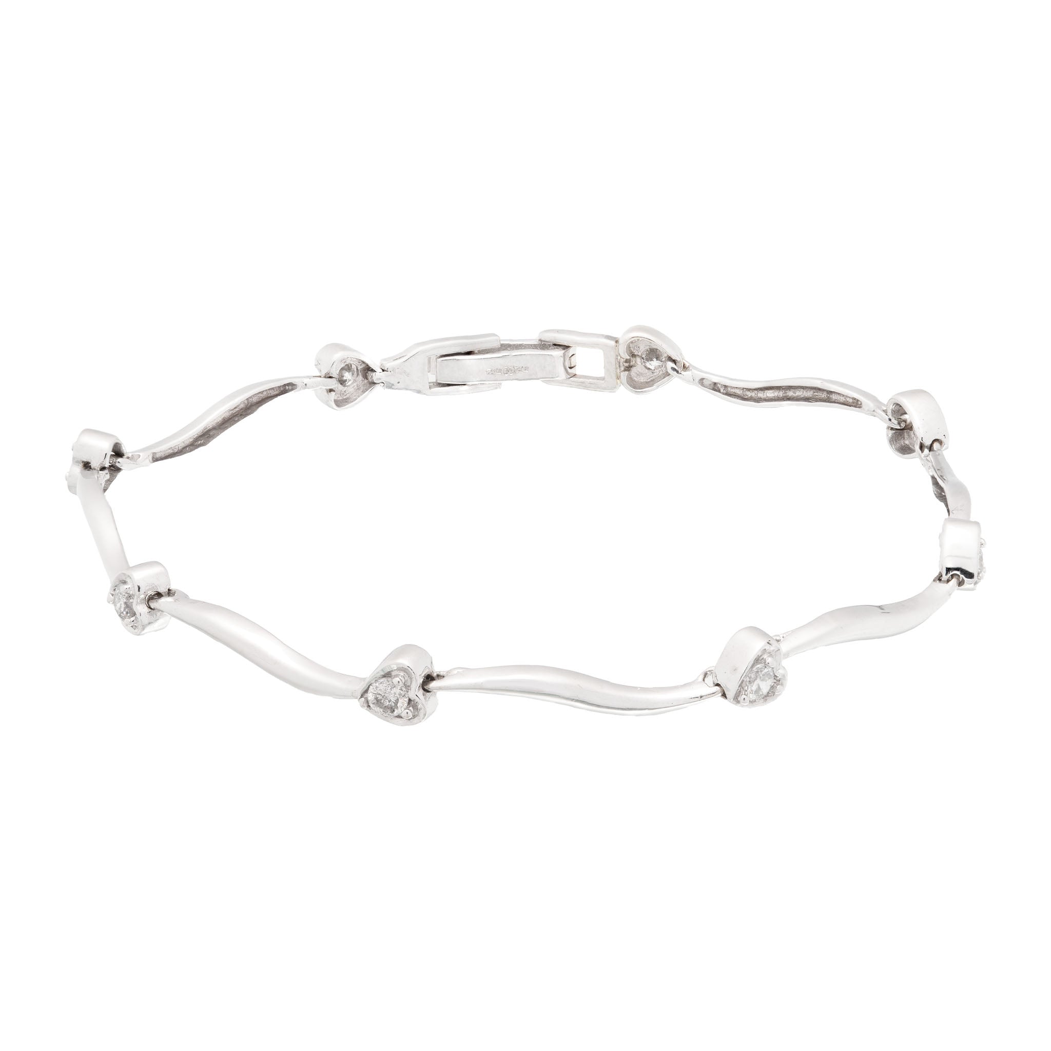 • Eight round brilliant cut natural diamonds in a three claw heart setting