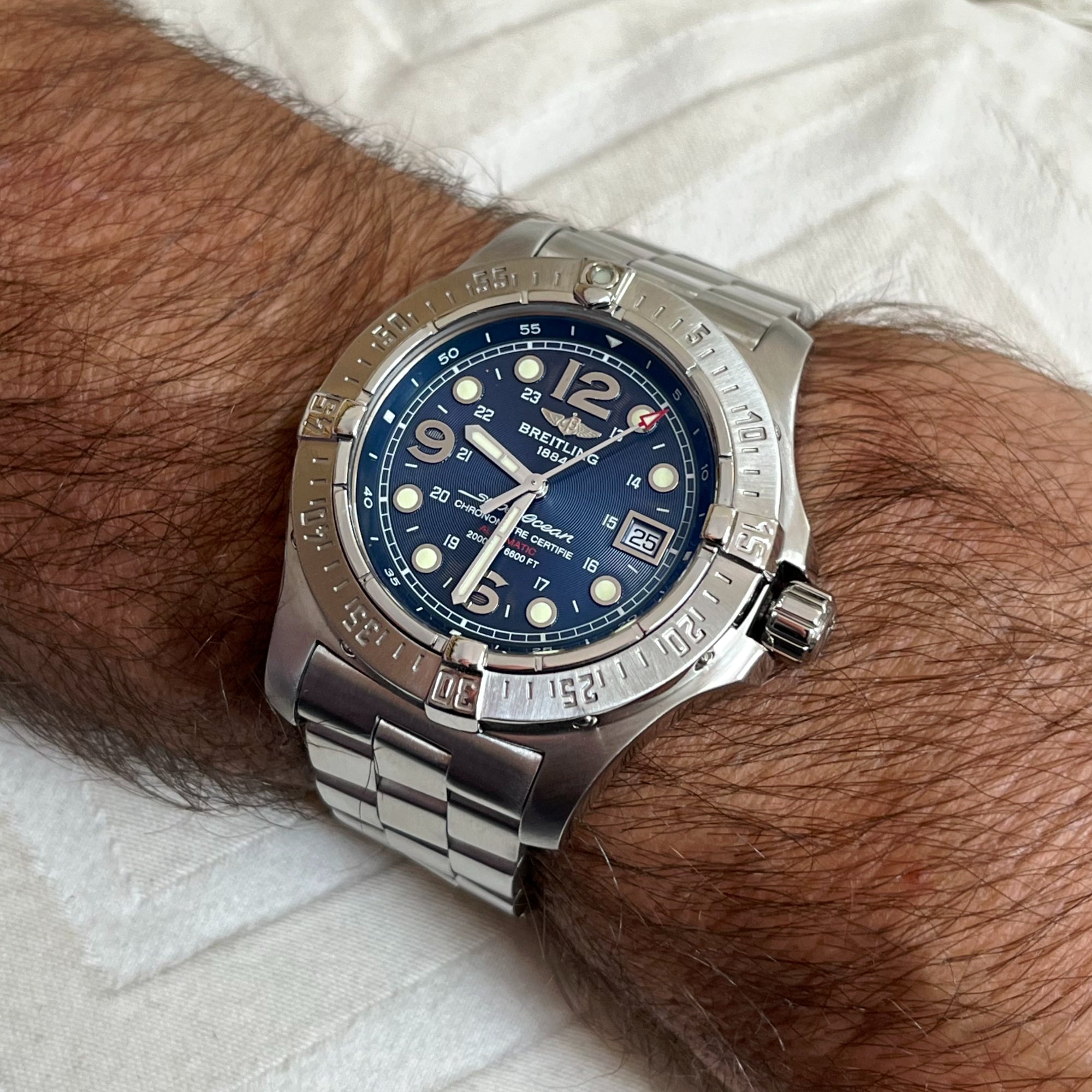 Designed for professional divers and adventurers alike, the Superocean Steelfish A17390 combines deep-sea capability with bold, functional design — featuring a striking blue dial and an impressive water resistance of up to 2000 metres.