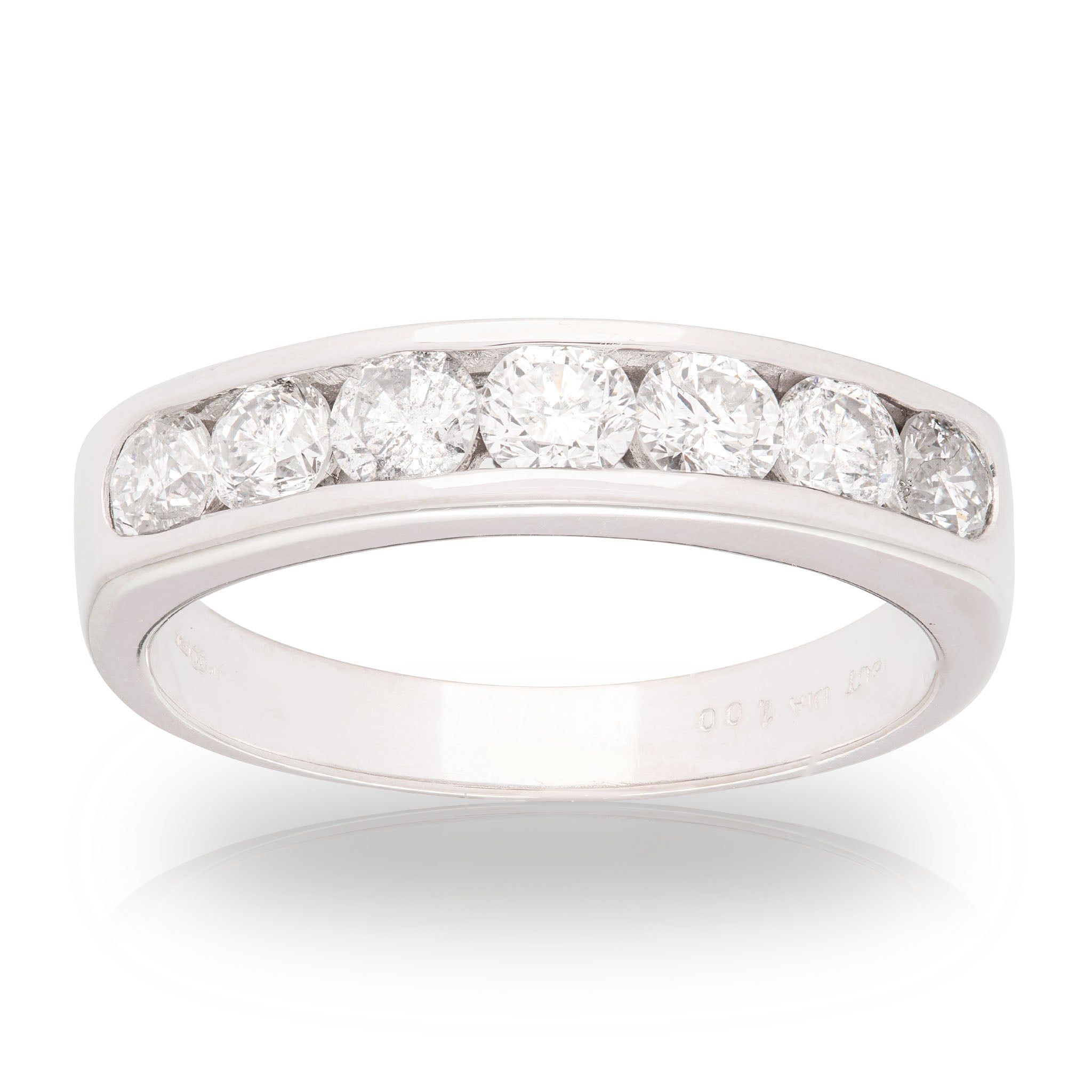 Set with seven sparkling round brilliant cut natural diamonds in a channel setting