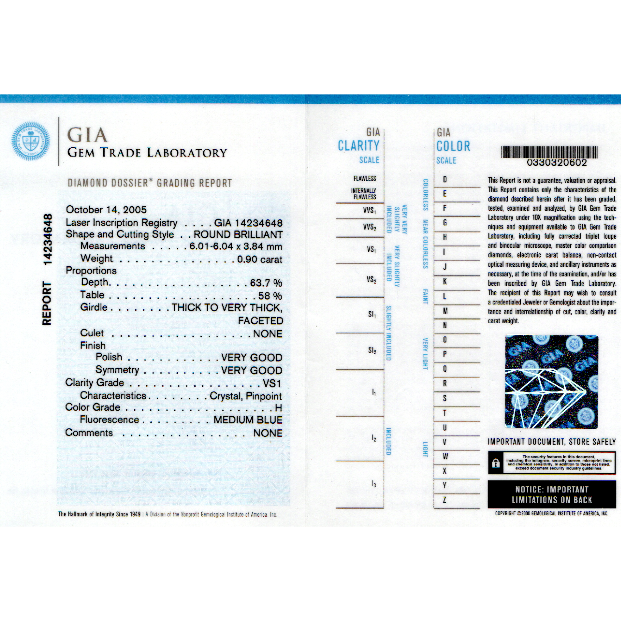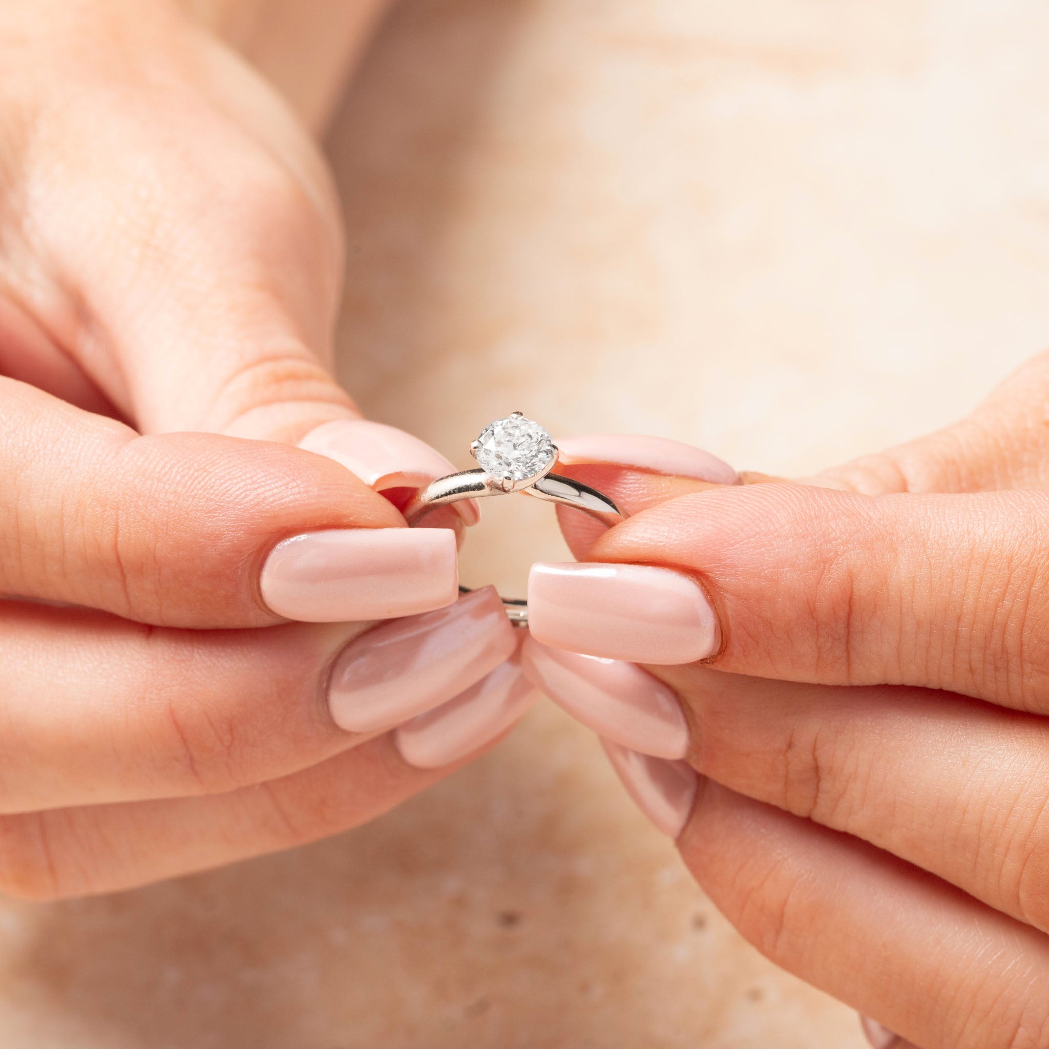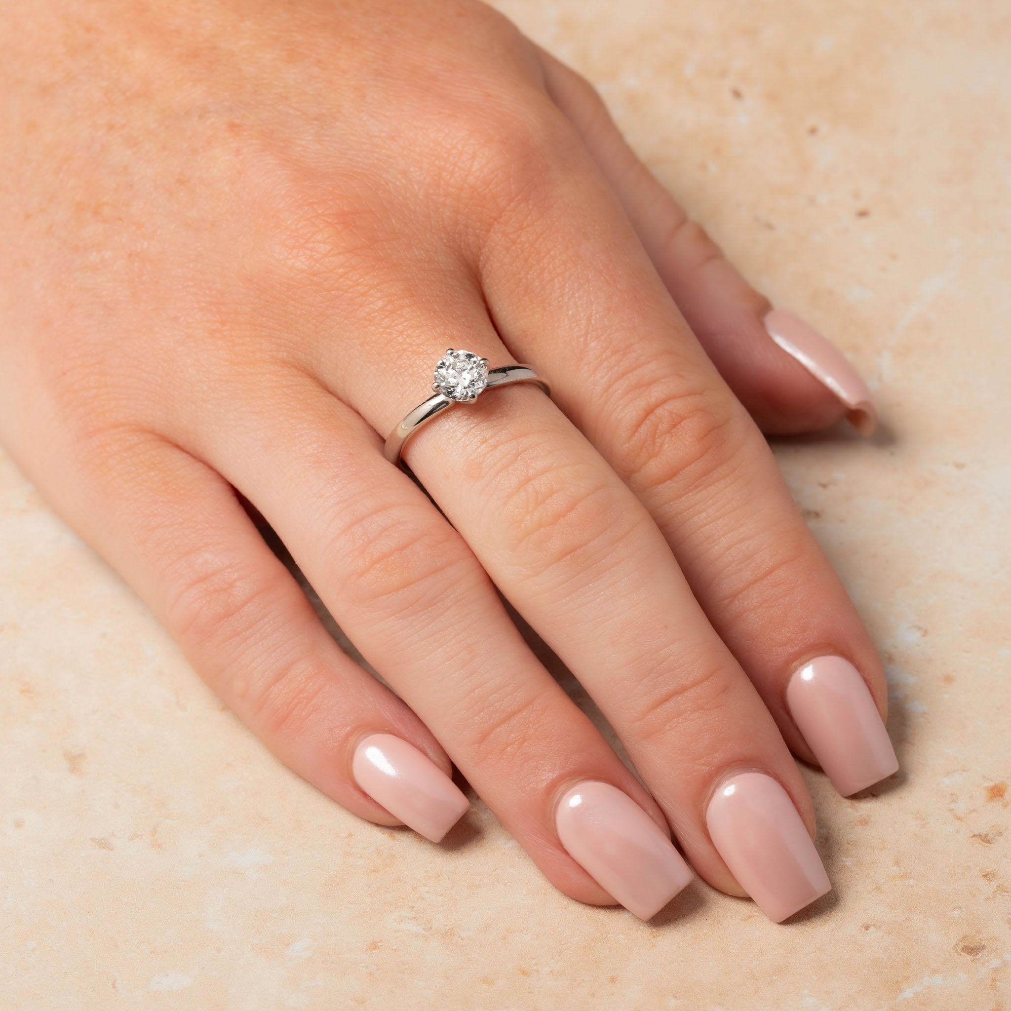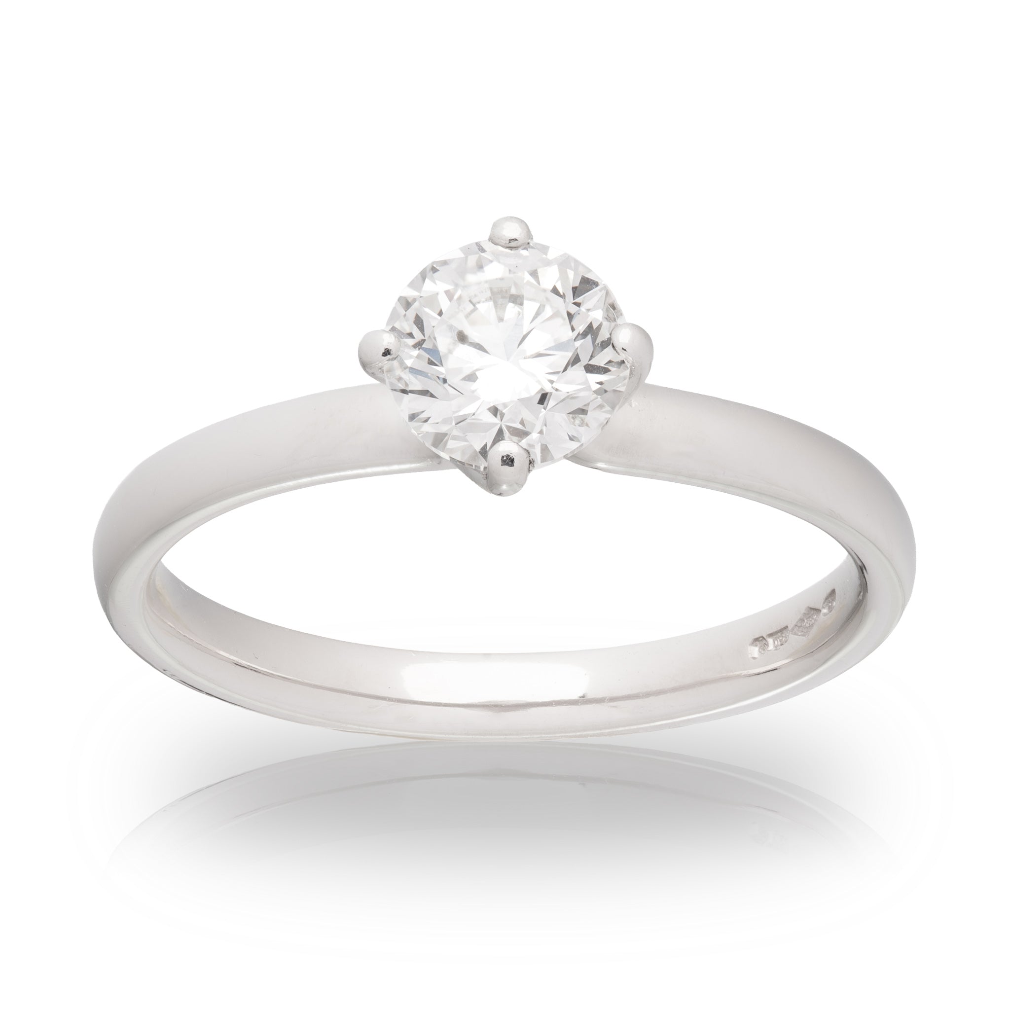 • Set with a 0.90ct natural round brilliant cut diamond at the centre, securely set in a four-claw setting